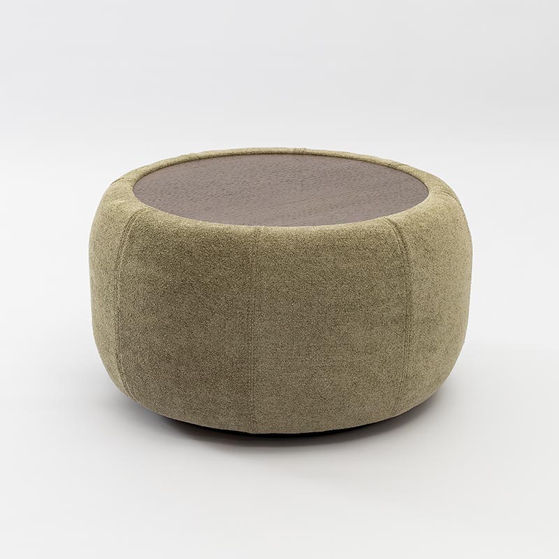 | Esta serie de piezas tapizadas pueden funcionar tanto como asiento informal como mesa auxiliar. Su diseño invita a ser usado de manera individual o en conjunto, permitiendo crear composiciones dinámicas que activan el espacio. Su presencia descontractura, suma ritmo y aporta un gesto lúdico al ambiente. Cuerpo tapizado en textiles especialmente preparados para su confección, base fija en madera de roble. Existe en dos versiones, con tapa de madera o tapizada. | ![]() |